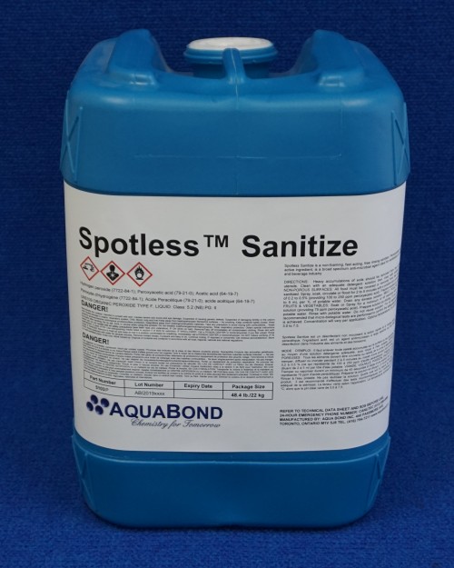 Spotless™ Sanitize is a Peracetic Acid sanitizer made in Canada and used in food and beverage applications. It is eco-friendly and highly effective broad spectrum sanitizer. It is used in CIP, soak, and spray applications and does not require rinsing, which saves water and process time. For pails, drums or totes, industrial shipping applies. Contact us to order (Phone: 416-754-7211).